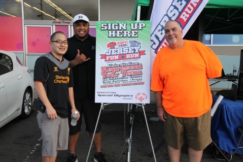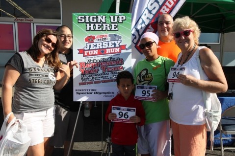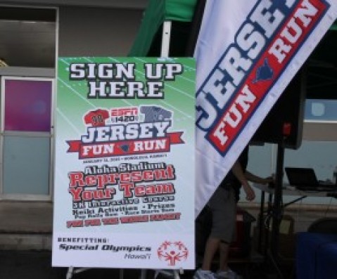 ESPN 1420 held a packet pick-up on Saturday at the Pearl City Shopping Center for runners registered to participate in the ESPN 1420 Jersey Fun Run scheduled for Saturday, January 31 at Aloha Stadium.