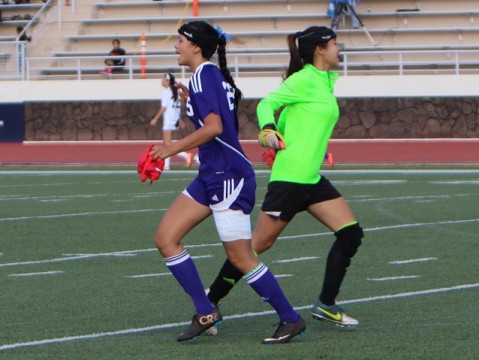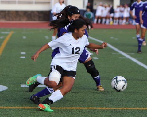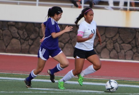 Pearl City senior F/HB Nikki Suwa and Campbell junior MF/F Aliani Lorenzo both scored