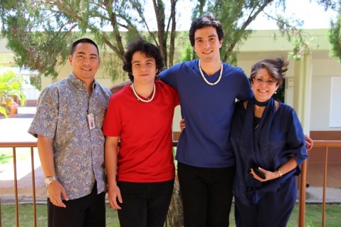 (Pictured from L-R), Mr.Alika Ahu, Vice Principal, Manana Elementary School, Kyle and Sean Luster, Red