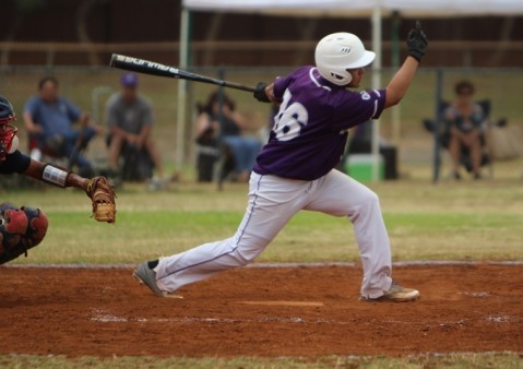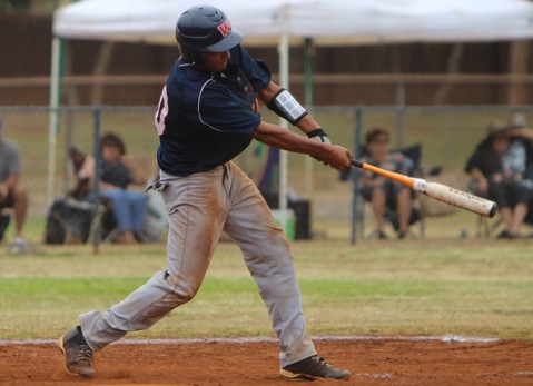 Ejay Kuakini connects in the bottom of the fourth inning with an RBI single that scored