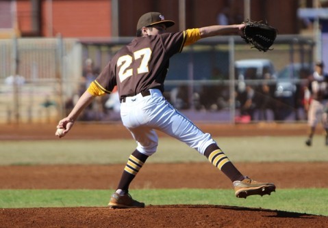Mililani’s Kyson Outram took the loss in relief for Trojans starting pitcher Koa Eastlack who pitched four innings allowing one run on six hits with one strikeout and one walk in a no decision performance. The Trojans utilized five pitchers in the contest against the Chargers. Three Trojans pitchers took the mound in relief in the bottom of the seventh inning.