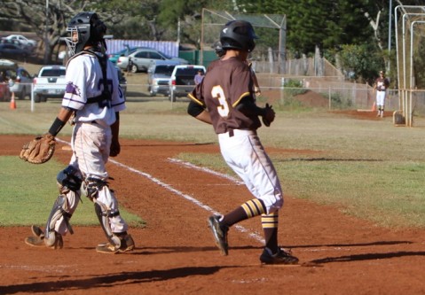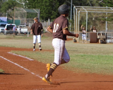 on a wild throw to first base for the walk off 4-3 win over Mililani. Mililani intentionally