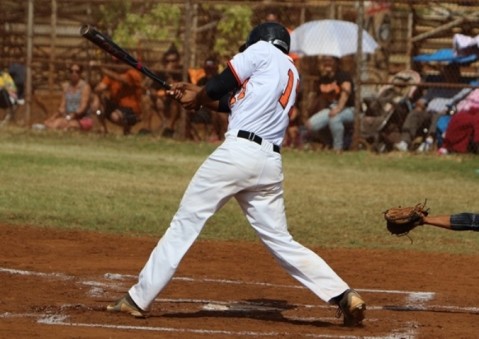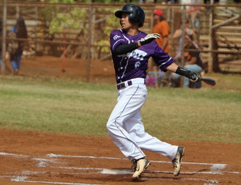 Kahaloa in the top of the second inning with a hard hit single to left field.