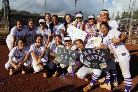 Pearl City bid Aloha to teammates Taylyn Kimura and Natalie Kang on Senior Day held at the Lady Chargers Softball Stadium on Thursday, April 16 following the Lady Chargers 5-1 win over the visiting Waianae Lady Seariders.