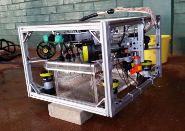 The MATE ROV, Kaikoa, is resting and drying off after a test run in the pool.