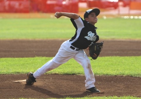 Waipio starting pitcher Spencer Rego worked hard from the mound in the championship game.
