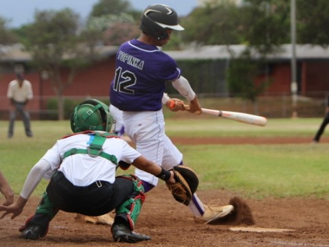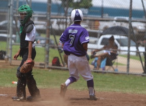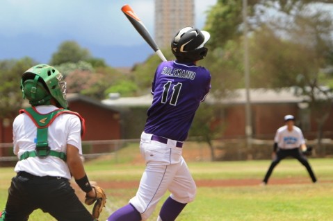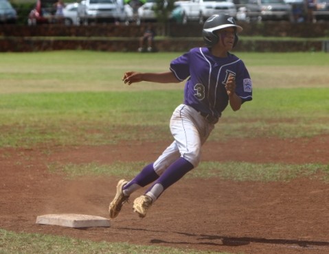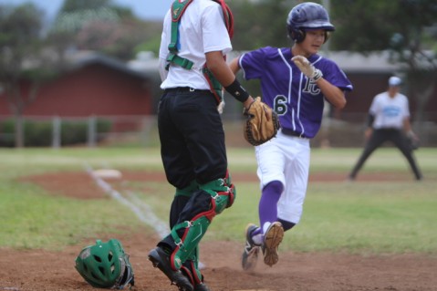 Waialae scores from third base on Kalae Holt's RBI sac fly. Waialae came into the game