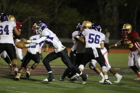 Pearl City scored first on a 27 yard touchdown run by Isiah (Tala) Moeone with :28 seconds on the clock in the first quarter. Zameer Khan converted the PAT to go up 7-0. Moeone finished the game with 59 yards on 6 carries and one touchdown.