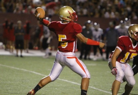 Pearl City QB Isaiah Asinsin is pictured under center in the second
