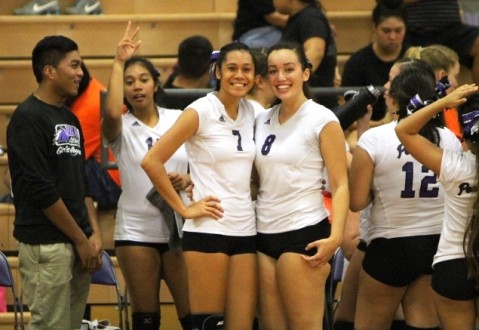 Maycee Kealoha drilled home the match point winner on a cross court kill in rally scoring to defeat the Lady Sabers 25-22, 17-25, 15-13 on Thursday at Pearl City High School.