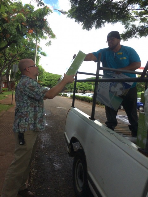 FANS FROM FANS organizers made the second and final delivery of 152 free fans to Pearl City High School today. Thank you to Jaci Agustin, Jack James and Eric Ching for helping in securing and delivering a total of 260 fans to PCHS students and teachers to help cool down their classrooms