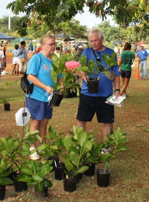 Be sure to line up early to get your first choice from a variety of native plants, fruit and spice trees, palms, and exotic trees and shrubs. The fruit trees are always popular, but many prefer flowering shrubs. Featured for the first time are gardenia ‘Heaven Scent’, ‘ilima, parsley panax, and white powderpuff tree.