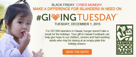 The Hawaii Foodbank is asking for your help this Holiday season in helping feed Hawaii's hungry with food drive events throughout the month of November 2015 through January 2016. There are so many opportunities to truly help fill the Hawaii Foodbank shelves with your generous food and cash donations.