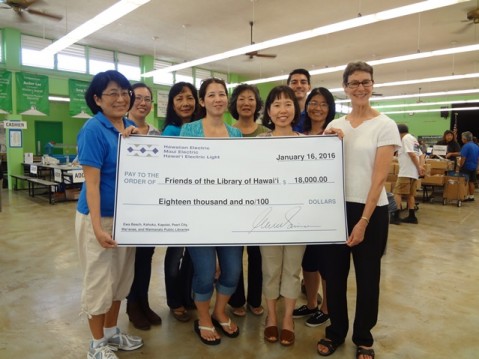 An $18,000 contribution from Hawaiian Electric to the Friends of the Library of Hawaiʻi will be
