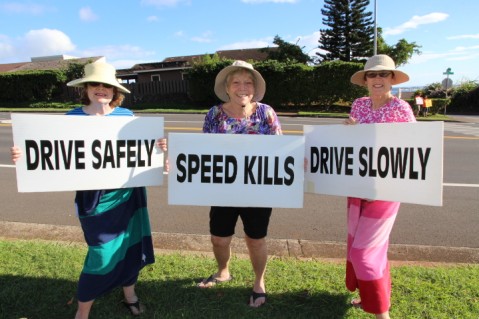 A very special mahalo to the Newtown Security Watch Team and community volunteers who braved the rain to sign wave on Kaahjele Street on Tuesday, February 16 as a part of the CTAP – Community Traffic Awareness Program.