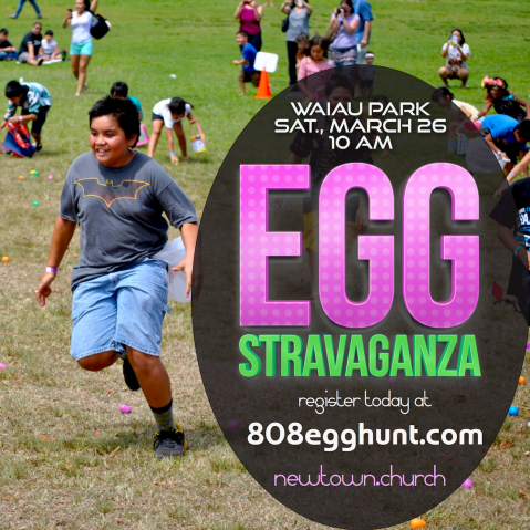 Bring the ohana to the Eggstravaganza "Free" community Easter Egg Hunt Saturday, March 26 from 10 am – 12 pm. at Waiau District Park in Pearl City.