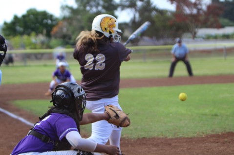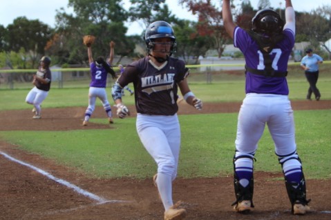 Mililani's Jerae Keliikoa drove in Brooke Yasuda from third base with the game winning RBI single to centerfield in the bottom of the seventh inning to beat Pearl City 2-1 on Thursday in a key OIA Western Division varsity softball match-up played at Mililani High School.