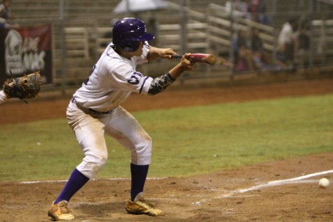 laid down a bunt that was fielded by  the Mililani catcher and thrown away at first