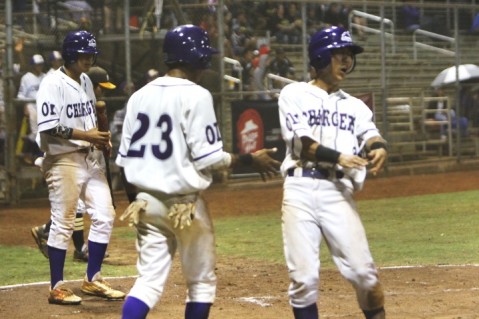Pearl City captured the  Oahu Interscholastic Association Western Division baseball crown with a 7-4 win over Mililani on Wednesday at Hans L ‘Orange Park in Waipahu. Before a packed stadium, and a live television audience, the top ranked Chargers proved once again that teamwork is the key component to successfully manufacturing wins as they moved to a perfect 11-0 while securing the divisions #1 seed in next week's OIA Championship Tournament.