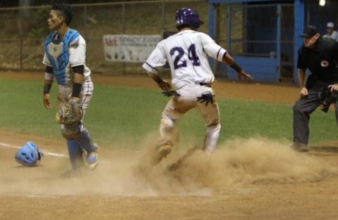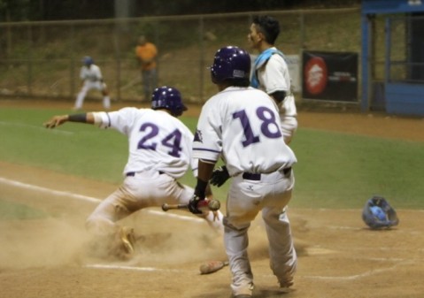 Noah Auld scores the go ahead run to put the Kailua uo 4-3. The