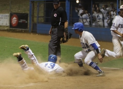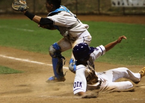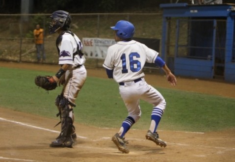 Dustin Imanaka scores on a RBI single by Lawson Faria