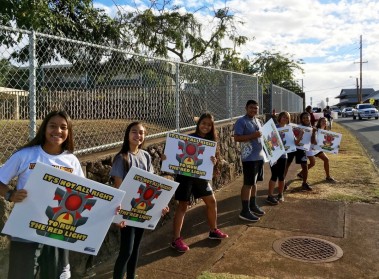 Drivers, don't run the red light! Each day 120,00 drivers run the red light! 30,800 fatal accidents happened last year alone. So, Highlands intermediate Student Council in conjunction with all 8 Pearl City elementary schools and Pearl City High School, waved signs saying loud and clear — “Don't Run the Red Light!” In the early morning, out on Ho’olaule’a Street fronting the school, the Highlands StuCo waved and held signs to bring awareness to this huge problem! By not running a red light, you just might save a life…we hope this will encourage you to follow traffic safety! Jade, StuCo Historian
