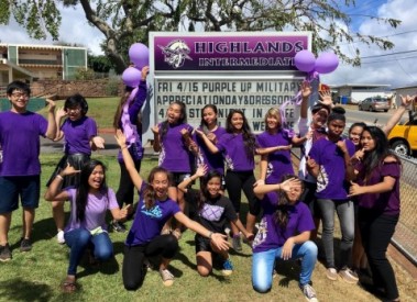 Everyone on campus — students, faculty, staff — to wear purple today as a visible way to show support and thank military children for their strength and sacrifices. Purple was chosen because it is the color that symbolizes all branches of the military, as it is the combination of Army green, Coast Guard blue, Air Force blue, Marine red and Navy blue. Big mahalo to all of our Highlands military students, faculty, staff and parents!