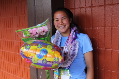 Sunshine is pictured with PCHS Vice-Principal Mr. Kyle Miyashiro