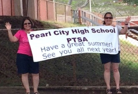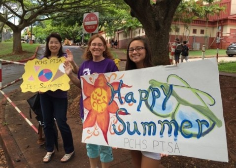 The PCHS PTSA sign waved on Thursday, May 26, 2016, last day of school, just like they did on the first day of school. Here are some pictures from Thursday wishing the students to have a great summer!