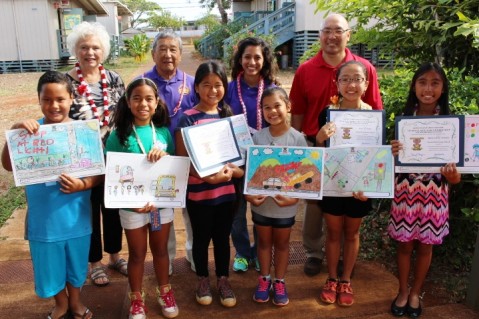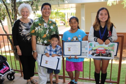 The Pearl City Community Association awarded two students with $100.00 checks for their choice as the Best Overall Design and Red Light Traffic Safety Message. Waiau Elementary School’s Aleah Meneses and Kanoelani Elementary School’s Dana Dela Cruz were chosen as this year’s winners.