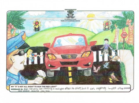 Students representing eight Pearl City Complex Elementary Schools from Grades K-6 also participated in the It’s Not All Right To Run The Red Light Poster Coloring Contest that ran from Thursday, March 31 – Thursday, April 14.