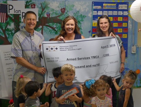 Armed Services YMCA has received a generous $12,000 grant from the Hawaiian Electric Companies in support of the Early Learning Readiness (ELR) program. The ELR program serves toddlers and preschoolers providing the educational structure for these young children to acquire the cognitive, physical, social, and emotional skills necessary for future learning, and to prevent these military dependent children from falling behind academically in elementary school and beyond.