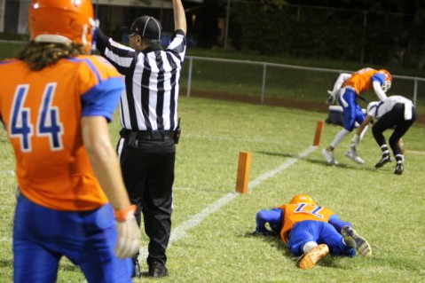 Caden Chung stretches the ball over the goal line scoring on a 20 yard run