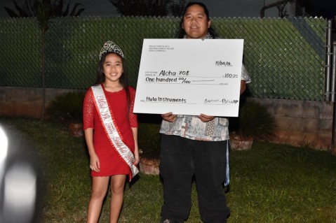 My son, Kekoaokalani of Aloha 808 was surprised when Ms. Jr Teen Hawaii, Arahame Domingo, presented him with a check for his 3rd annual Christmas Presents drive for the children on the West side. I myself was surprised when she presented me a check for Aloha Hula. That's the first time we ever experienced a child her age giving from the heart. . .to support for a good cause.