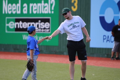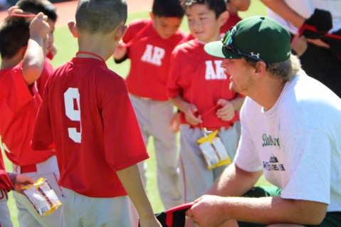 with the kids during the 3-day Baseball In Paradise experience at Les Murakami Stadium.