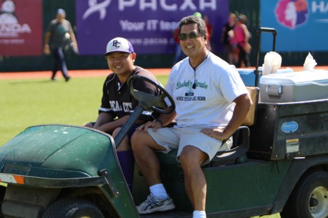 Ethan Yonamine who helped with the grounds crew and also played with his Pearl City