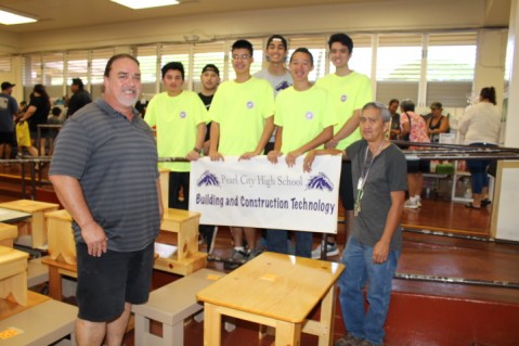 Waffle Dogs, Poi Mochi, Jamba Juice, Bentos, Local honey from Bee Works Hawaii were a few of the awesome food vendors who sold their ono products to craft fair attendees. There were so many creative and talented craft vendors as well. One of my favorites was the masterfully designed and hand crafted wood benches, tables, and chairs by PCHS students from Mr. Lester Aranayado's Building and Construction Technology Program.