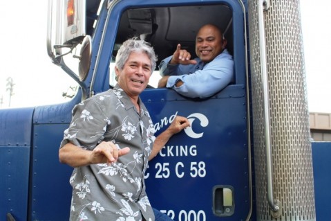 B&C Trucking owner Verne Santos is pictured with Momilani students