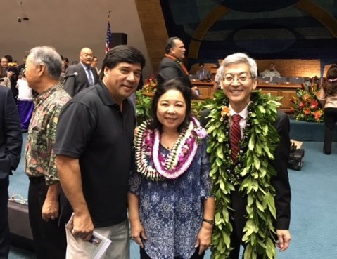I would like to thank Senator Breene Harimoto and his office for the invitation and opportunity to sit with Senator Harimoto and wife Cheryl, along with City Councilmember Brandon Elefante, Dr. Randall Holcombe, Director of the UH Cancer Center, Dr. Joe Ramos, Deputy Director of the UH Cancer Center, and Pearl City community leaders during Wednesday's opening of the 2017 Hawaii State Senate Legislature. It was a great experience. Also, thank you to Senator Harimoto's legislative staff who presented us with a terrific lunch following the Senate Legislative Program; Robert Sato, Senior Advisor; Linda Nunes, Office Manager; and Karen Scharfenstein, Legislative Assistant.