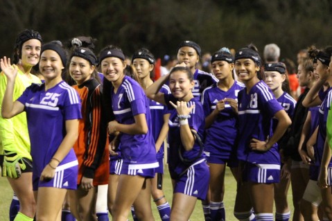 Punahou stopped defending state champion Pearl City 3-0 in the 2017 HHSAA State Division I Girls Soccer championship semifinals on Friday, February 3, at the Waipio Peninsula Soccer Complex in Waipahu. True Dydasco (19:35), Jamie-Lyn Shimamoto (28:20), and Lauren Mukaigawa (78:13) led Punahou with three goals apiece.