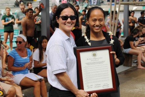 2017 at poolside of the University of Hawaii's Duke Kahanamoku Aquatic Complex in Manoa.