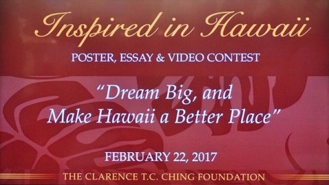 Wednesday evening, February 22, at the "Inspired by Hawaii" 7th Annual Poster, Essay & Video Awards Ceremony, presented by the Clarence T. C. Ching Foundation, held at Kahala Mall; winners of this contest were announced.