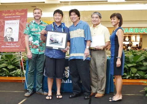 "Congratulations to Wyatt Imamoto", 6th grade student of Momilani Elementary School who took 3rd Place in the Video Division (opened to middle and high school students grades 6-12) and cash award of $75 for his video submission called "Grandma on the Go." Mr. Todd Tashiro proudly represented Momilani Elementary School and Wyatt's 6th grade teacher.