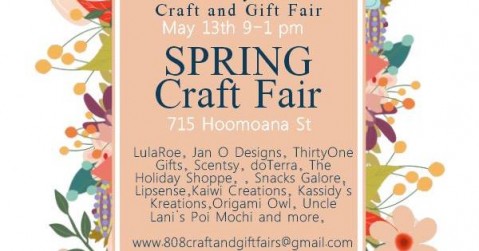 Check out the Spring Craft & Gift Fair this Saturday, May 13 from 9am – 1pm at the Momilani Community Center in Pearl City. The event is hosted by 808 Craft & Gift Fairs. Saturday's Spring Craft & Gift Fair is a perfect opportunity to shop for that very special Mother's Day gift. Please see the flyer below for participating vendors and for more information.