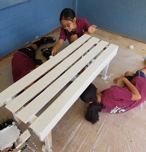Mahalo to students from Ms. Karen Ching-Hew's DIY Pathways program at Pearl City Highlands Elementary School who built, sanded, and painted two benches and recently delivered them to the Momilani Community Center in Pearl City