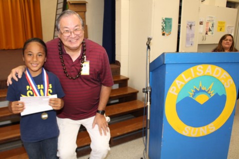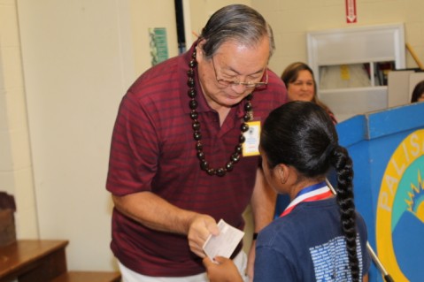 Olivas-Maake was presented a recognition letter and a $50.00 check by past Rotary Club of Pearlridge President and current Board Member Dick Mosko for winning Rotary International's Dictionary 5000 Good Citizen Award. Rayden was chosen by Palisades Elementary third grade teachers for best exemplifying the Principles of Rotary International's 4-Way Test.
