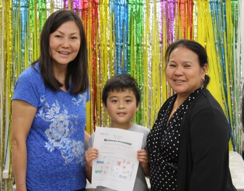 Palisades Elementary School is a repeat winner of the Home Energy Challenge, having placed first and second in previous years. Celebrating this year’s third-place grand-prize win, with a $3,000 check presented by Hawaiian Electric Company, were (l to r) Palisades Elementary Teacher Geri Kimura; New Year’s energy resolution drawing contest winner Jaycob Yuu; and Palisades Elementary Vice Principal Jan Kaneholo.