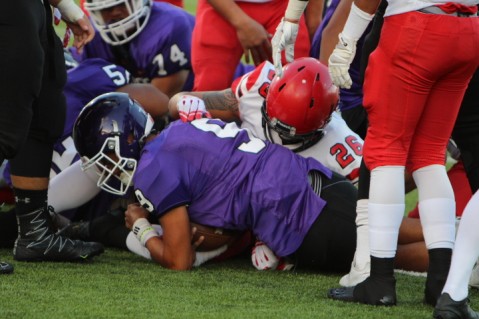 Pearl City Chargers QB Isaiah Asinsin completed 8 0f 25 passes for 60 yards with 3 INT's, and one rushing touchdown.