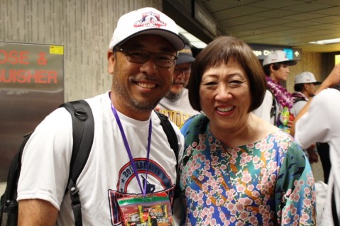 Hawaii Congresswoman Colleen Hanabusa helped greet the boys and their coaches with lei and also presented Thunder head coach Daren Akiyama with a recognition certificate from the U.S. House of Representatives.