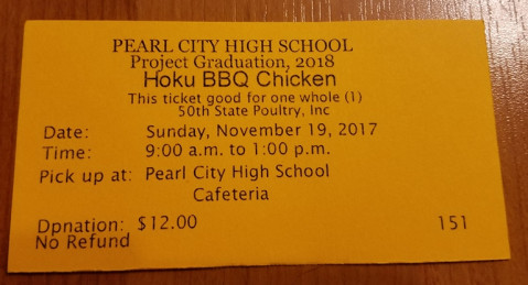 PCHS Project Graduation is selling tickets for BBQ (Huli Huli) Chicken and Maki Sushi to be picked up at the PCHS Craft Fair.